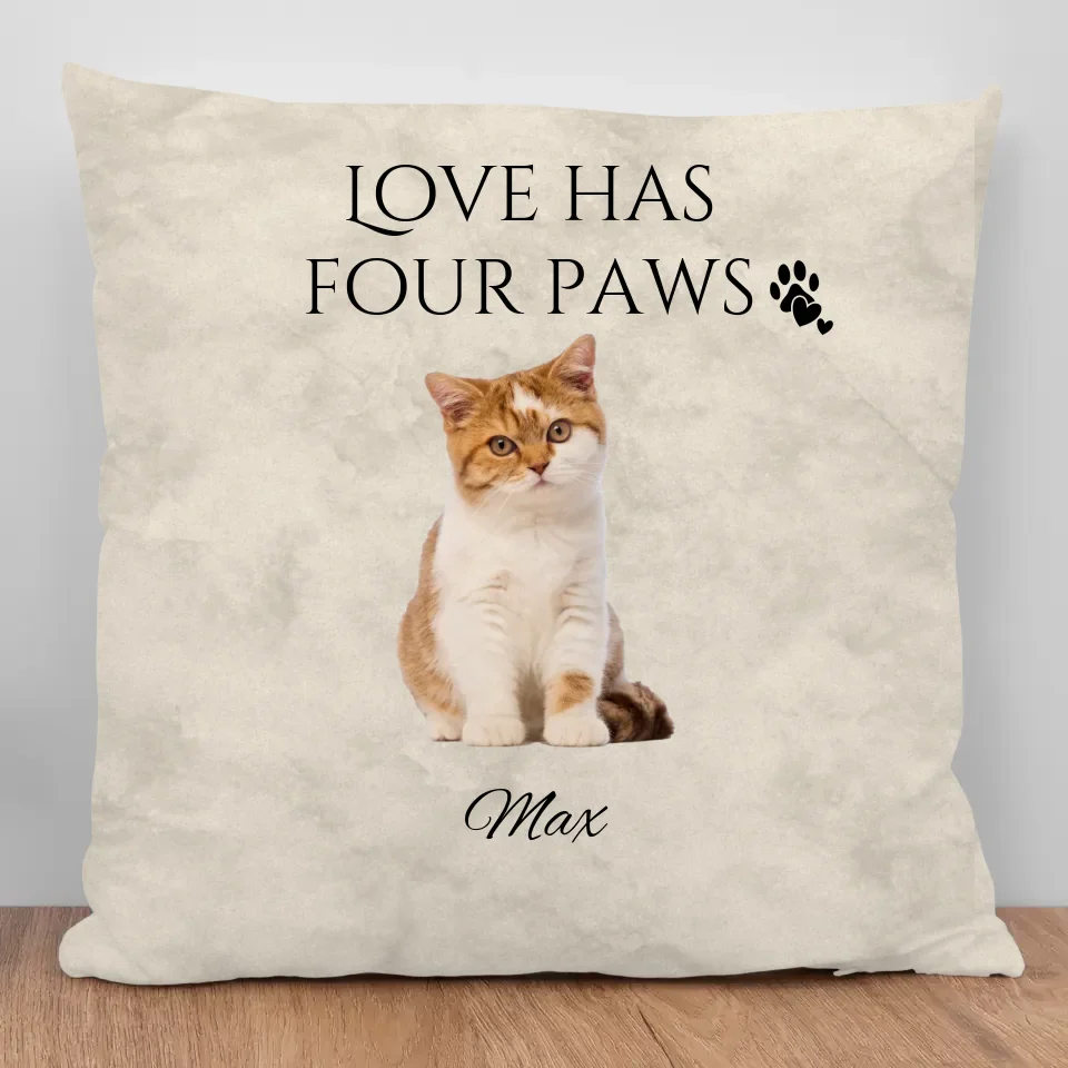 Make your love for your pet come alive with our "Love has four paws - Personalized pillow" pillow. Made from high-quality soft materials, this pillow is not only a fluffy and cuddly accessory but also a wonderful reminder of the unforgettable moments you've shared with your furry friend.